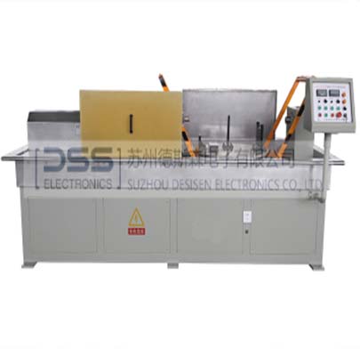 該設(shè)備為機(jī)電分開(kāi)式,是專(zhuān)門(mén)適用于鐵路列車(chē)提速,確保列車(chē)在重載、高速運(yùn)行,根據(jù)鐵道部對(duì)列車(chē)鉤體磁粉探傷要求而設(shè)計(jì)。設(shè)備具有單機(jī)工作和配合流水線檢測(cè)的功能,單機(jī)工作配備水平平臺(tái)架式上料機(jī)構(gòu),自動(dòng)進(jìn)位,設(shè)備采用復(fù)合磁化法、周向通電法、縱向采用磁軛裝置,對(duì)鉤頸、下鎖孔筋、勾舌圓弧面進(jìn)行復(fù)合磁化,由于受磁路的影響鉤耳采用穿棒法,實(shí)現(xiàn)了三路磁化,顯示,借助熒光的作用,能清晰的顯示任意方向的各種裂紋缺陷。全過(guò)程采用PLC控制,具有結(jié)構(gòu)合理、操作方便、自動(dòng)化程度高,檢測(cè)靈敏度優(yōu)等特點(diǎn),是目前鉤體專(zhuān)用熒光磁粉探傷機(jī)設(shè)備。